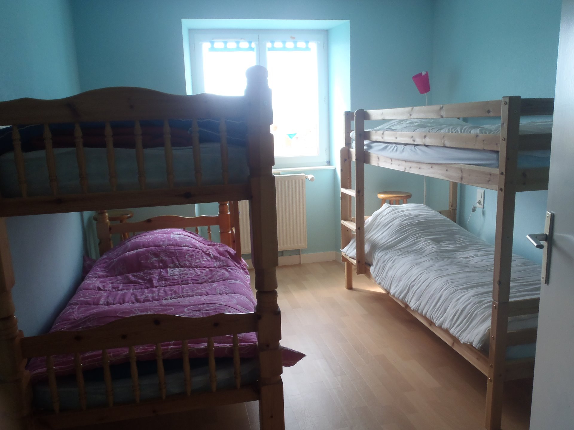 chambre enfant 4 lits de 90x190 superposés, 1 table de nuit, 2