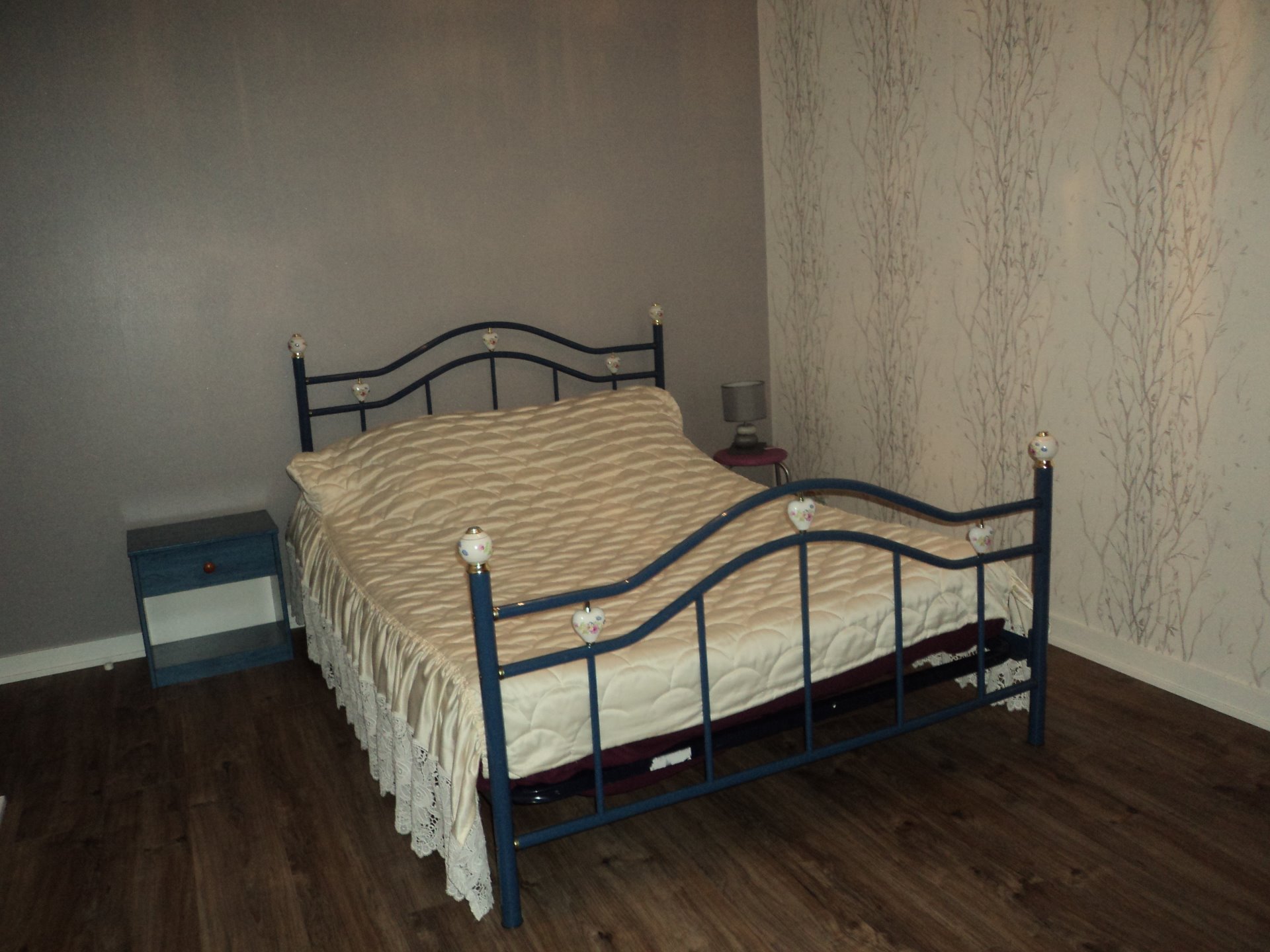 chaises, 2 lampes de chevet, 1 placard du mur avec penderie et